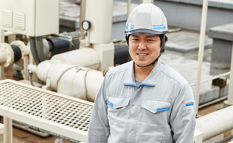高齢者向けの複合施設の建築現場で仕事をしています。当社は空気調和設備や給排水衛生設備の施工を担当しており、安全・品質・工程・原価の4つの管理が業務の根幹です。私は、当社の先輩社員にあたる所長(現場監督)のもとで、日々修行中です。実際には、たとえば工程に合わせて必要な資材を発注したり、図面を書いたり、協力会社のスタッフに指示を出したりして、工事を予算、納期内において進めていきます。
